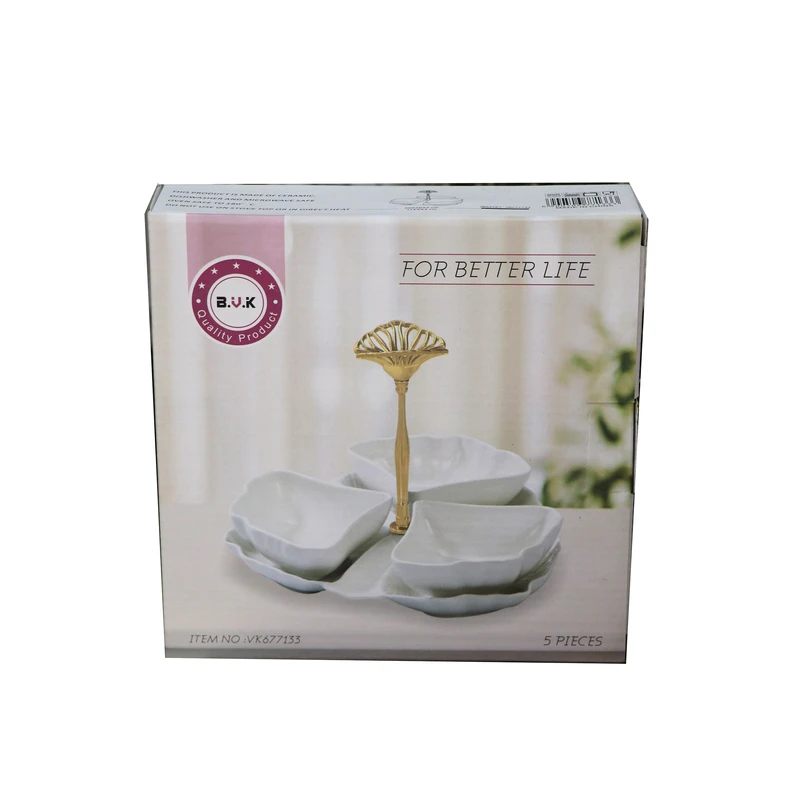 اردو خوری ۳ خانه طرح پروانه همراه با سینی برند بی.وی.کی بسیار شیک و مدرن جنس بدنه : سرامیک - مناسب برای سرو شیرینی و تنقلات